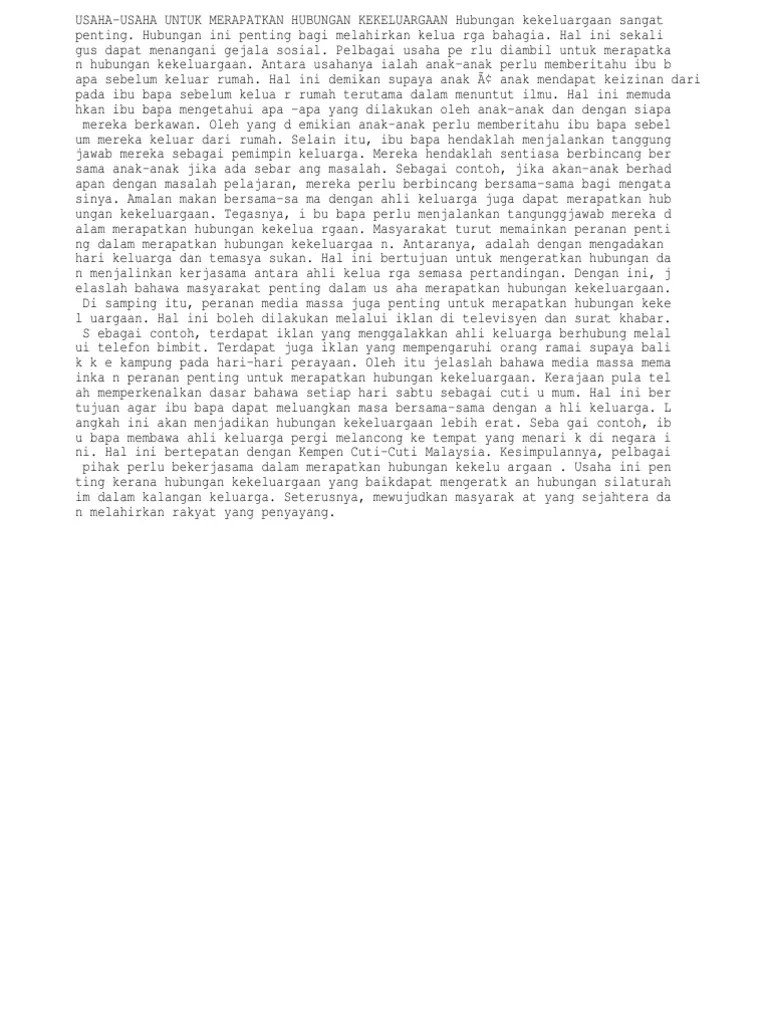 Untuk mewujudkan hubungan yang harmoni dengan sahabat. Tradisi kekeluargaan juga dapat mengeratkan hubungan silaturahim. Feb 16, 2021 · musyawarah untuk mencapai mufakat diliputi oleh semangat kekeluargaan. Karangan langkah mengatasi pencemaran alam sekitar: